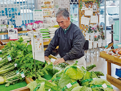 アグリハウスへ出荷するようになってからは、荷造りにもより一層注意を払うようになりました。スーパーマーケットの青果売り場も参考にしています。値札とあわせて大きなシールを貼り、「サラダカブ」や「サラダほうれん草」など、消費者目線でわかりやすい表示を心がけています。
