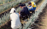 家族みんなでねぎの手入れ作業中