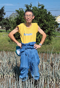 「それまで畑作業はまったくしたことがありませんでした」と語る博之さん。現在は病院の厨房で週3日働きながら畑を耕しています。奥様や子どもたちとともに丹精込めて野菜を作り、地域に根ざした新たな挑戦を続けています。