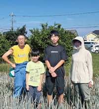 自慢のねぎ畑で、奥様の三奈さん、息子の由規さん、蒼士さんと