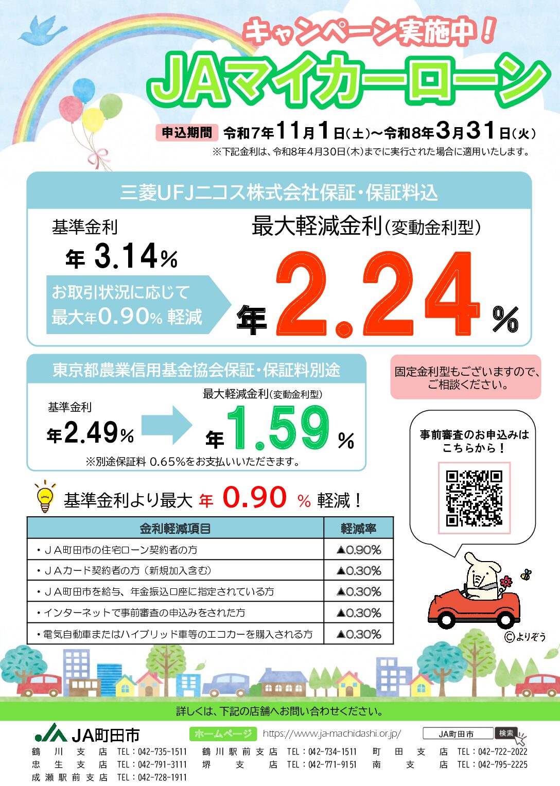 マイカーローンキャンペーン実施中!最大軽減金利2.24%(変動)