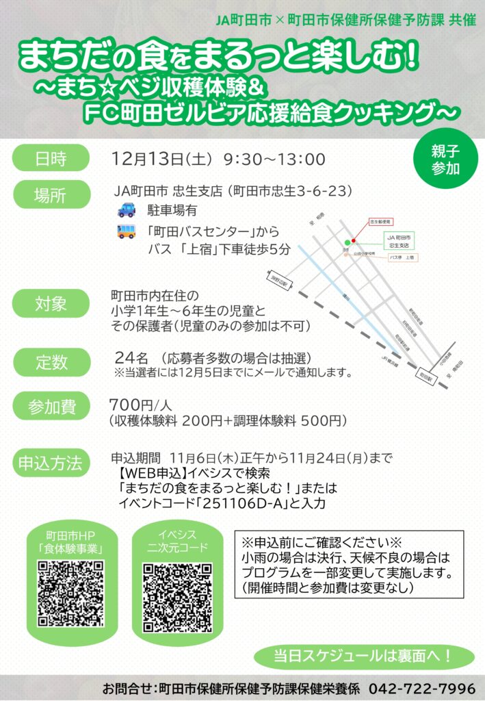 まちだの食をまるっと楽しむ!~まち☆ベジ収穫体験&FC町田ゼルビア応援給食クッキング~のお知らせ