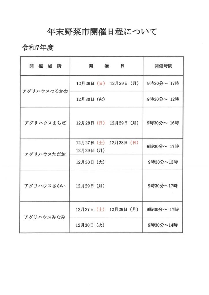 令和7年度 年末野菜市開催のお知らせ